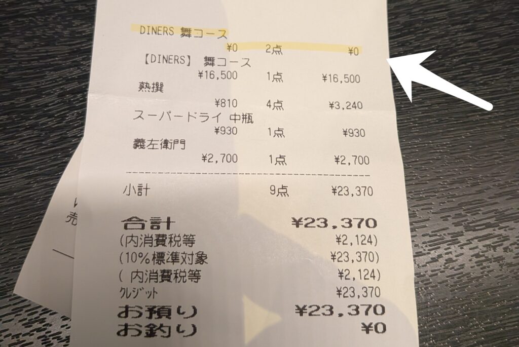 たった一回の会食で、年会費の6分の1を回収してしまいました。 これを年に6回利用すれば、それだけで年会費は実質無料になる計算です。