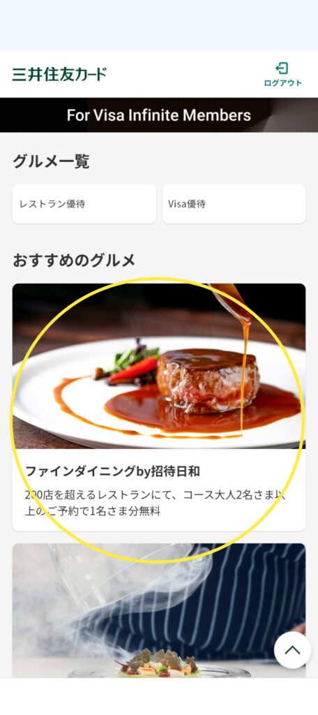 これが最も重要です。Googleなどで直接「招待日和」を検索してログインしてはいけません。 必ず、三井住友カードの会員サイト「Vpass」にログインし、そこにある専用リンクから招待日和のサイトへ移動してください。Vpassを経由することで「Visa Infinite会員」としての認証が行われ、初めて1名無料の特典が有効になります。