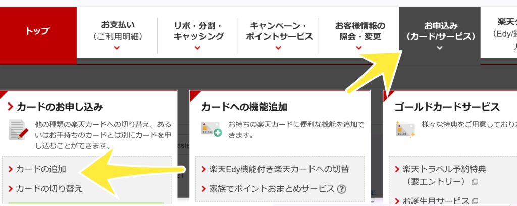 「新しくカードを作るのは面倒では?」と思うかもしれませんが、楽天カード会員なら「楽天e-NAVI」からの手続きは非常にスムーズです。