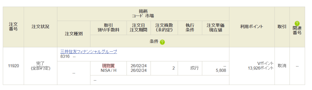 SBI証券でVポイント投資を行う場合、注文入力画面で「ポイント利用」を選択する必要があります。